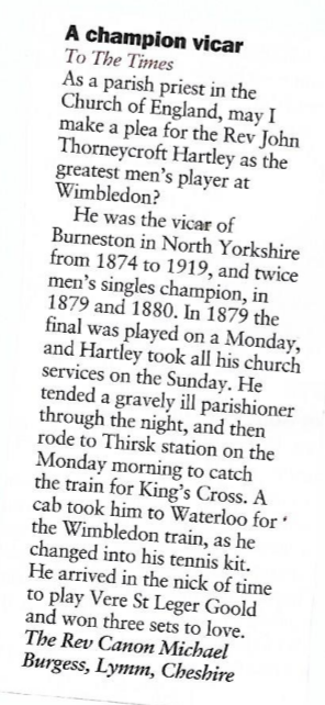 Burneston’s Vicar, Wimbledon Champion