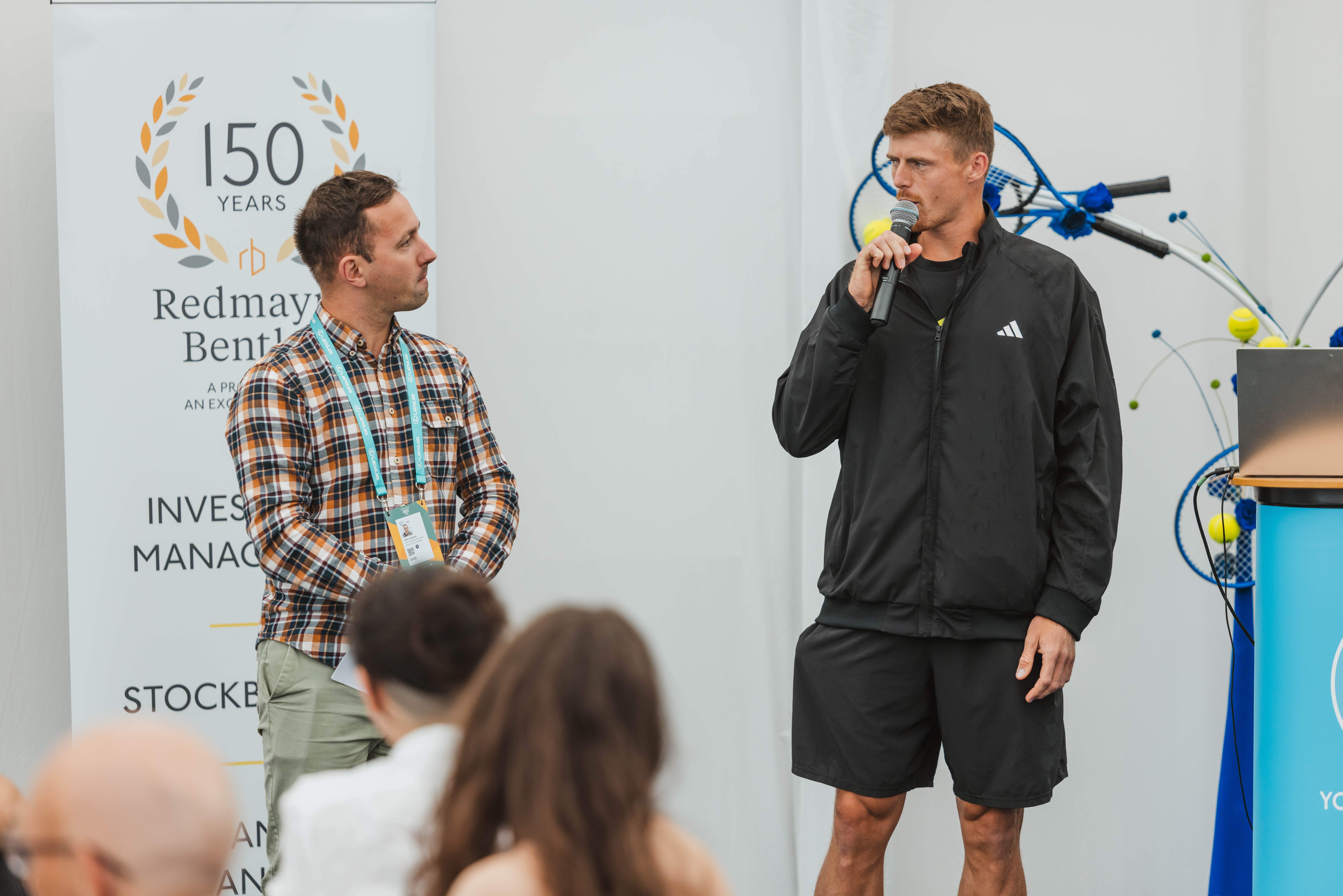 This year we were delighted to welcome tennis player Billy Harris the tournaments third seed who did a player Q&A session which proved extremely popular. This was followed by some fine Ilkley Hospitality which participants enjoyed and who were then treated to some world class tennis. Thanks go to all who helped organise a brilliant day and particularly our Sponsors Redmayne Bentley for their generous contribution and for helping ensure that this event is now firmly established within our annual calendar.